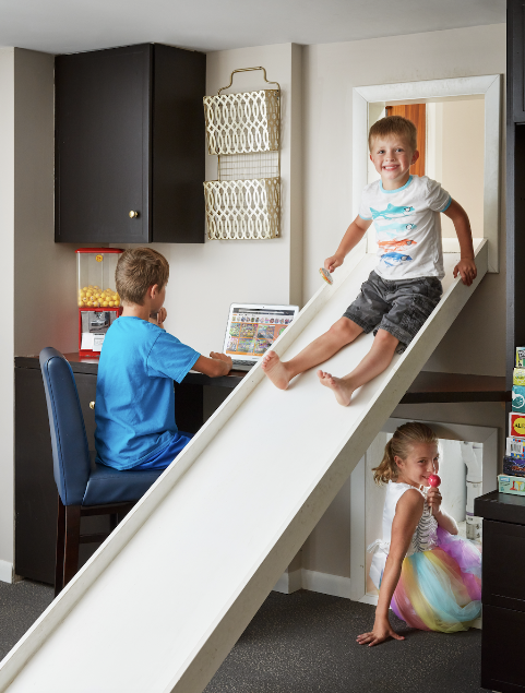 Here at Inspired Interiors, we embrace a world where joy and playfulness are more than welcome in our daily lives—and especially in our client’s home designs. Imagine this: a slide cascading from the upper floor that transports you to the ground level with a childlike grin on your face. These whimsical design features infuse our spaces with a vibrant spirit. Create a home where your days are filled with laughter and joy.