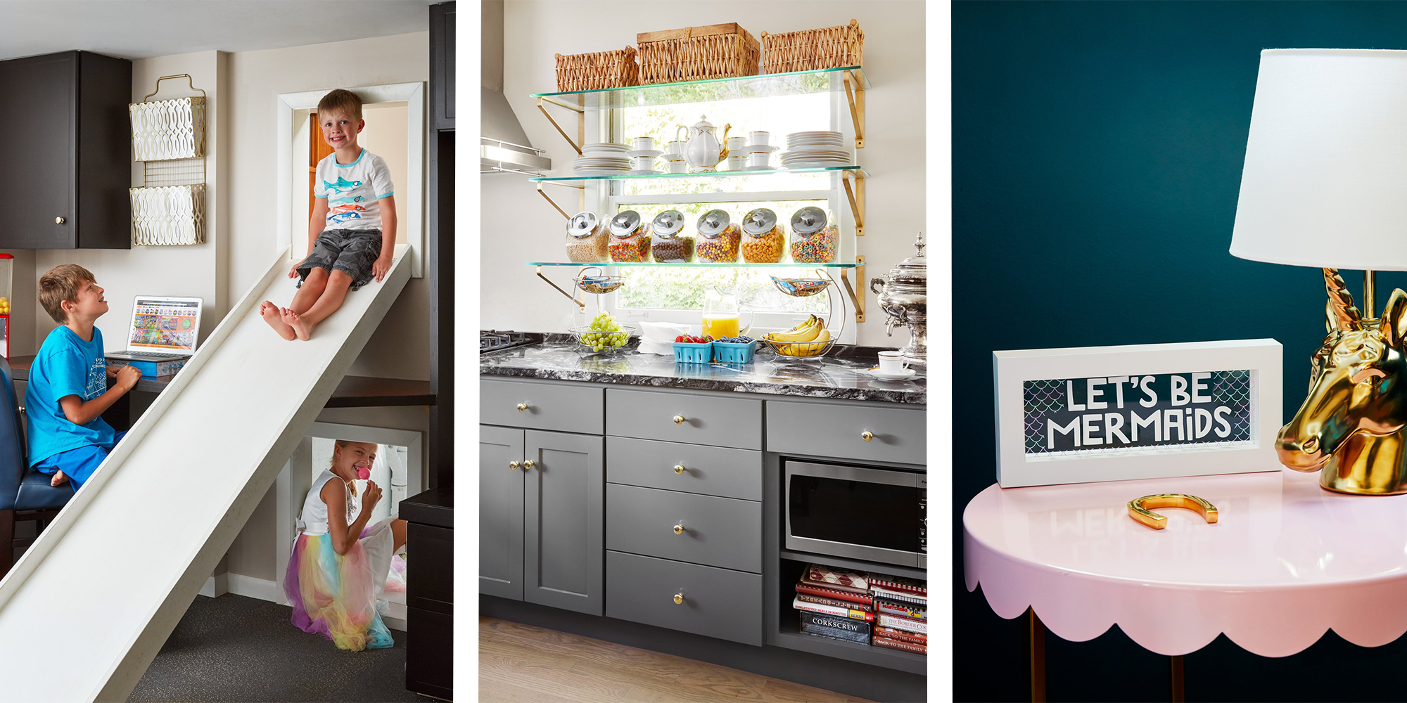 These projects are near and dear to my heart. My aunt created a wonderful concept she calls "Grammy Camp." She transformed her attic into a multifunctional space where all the family grandchildren (including my three kids) stay for a week or two each summer with their cousins. It's a bunk room, craft area, and playroom all in one. This setup allows the kids to have their own area to play and sleep without disrupting the rest of the home too badly. It's a brilliant way to create lasting memories while keeping the house from being destroyed.