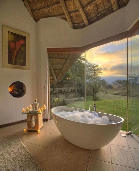 Proper lighting is paramount to the overall vibe of a space; think about how you feel in a light-filled room vs. a more shadowy setting. Considering how much natural light a room gets can help set the right mood; bright, sun-dappled spaces bring about a sense of awakening, which can also be re-created through the ideal incandescent bulbs. Dim down the lights (via a lower wattage) and turn up the heat in rooms where romance and intimacy are desired. (And don’t forget the candles!)