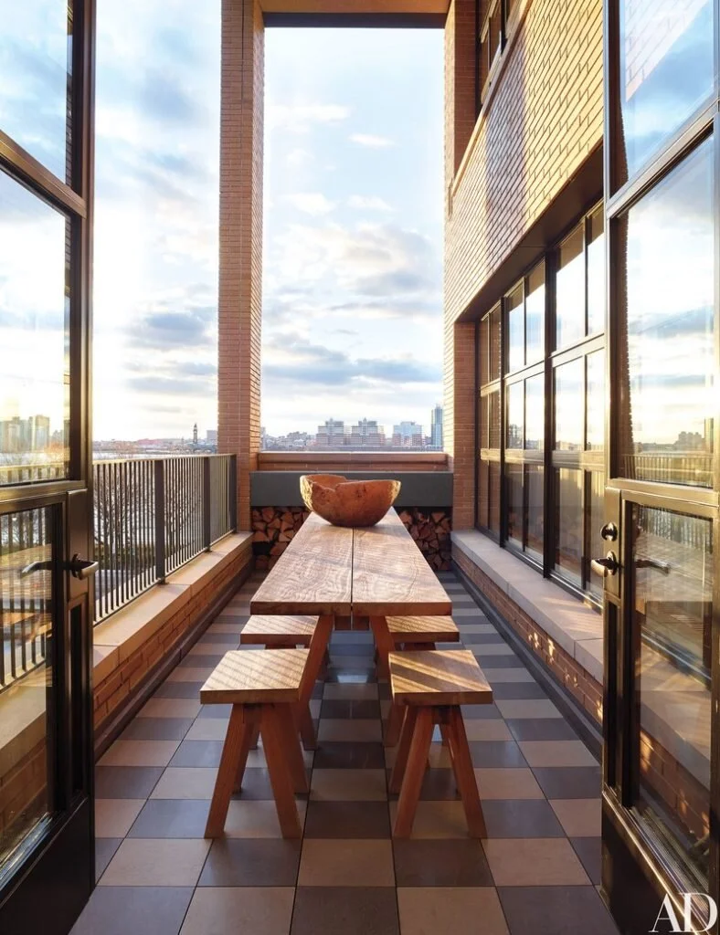 It’s a blessing and a curse for many city dwellers: You have a high-rise balcony or a petite patio, but the space is often restricted by its rectangular shape. Rethink the rectangle by mirroring its lines with a super-long picnic-style table that can host a sizeable soiree, maximizing what the real estate gods have given you.