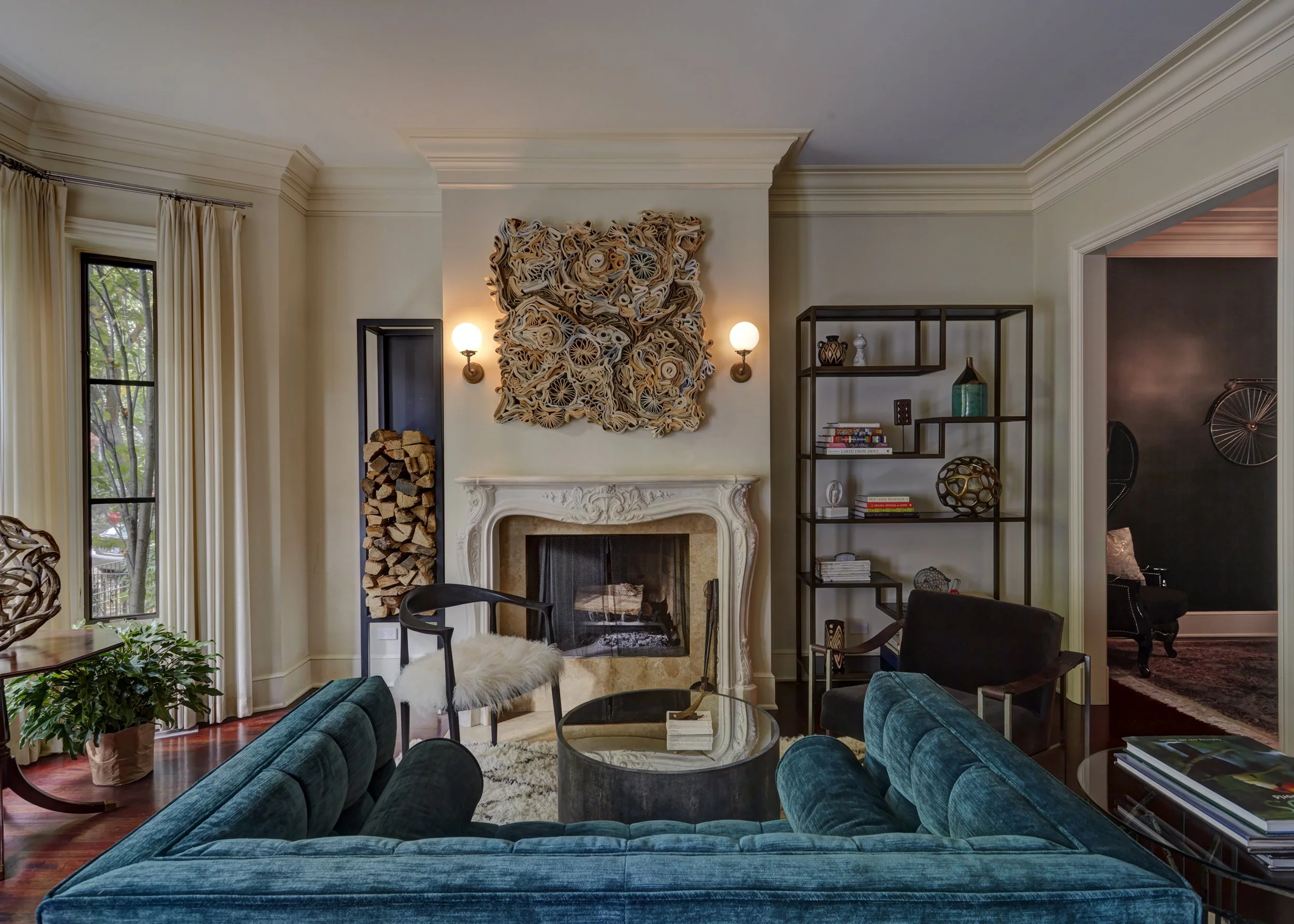 Funky and eclectic, this home is loud with personality but is nothing short of cozy and intimate. Welcoming guests into your home will be even more entertaining when the space you host in is a work of art inspired by YOU. Art and life come together creating a canvas to hold conversations and make family memories. Imagine family dinners sitting on plush vintage Pierre Cardin chairs, speaking of artists international and local, exchanging stories of all of your travels. Accents like the firewood storage blend style and function in a subtle way that does nothing but enhance the artistic vision used to manifest this design daydream.