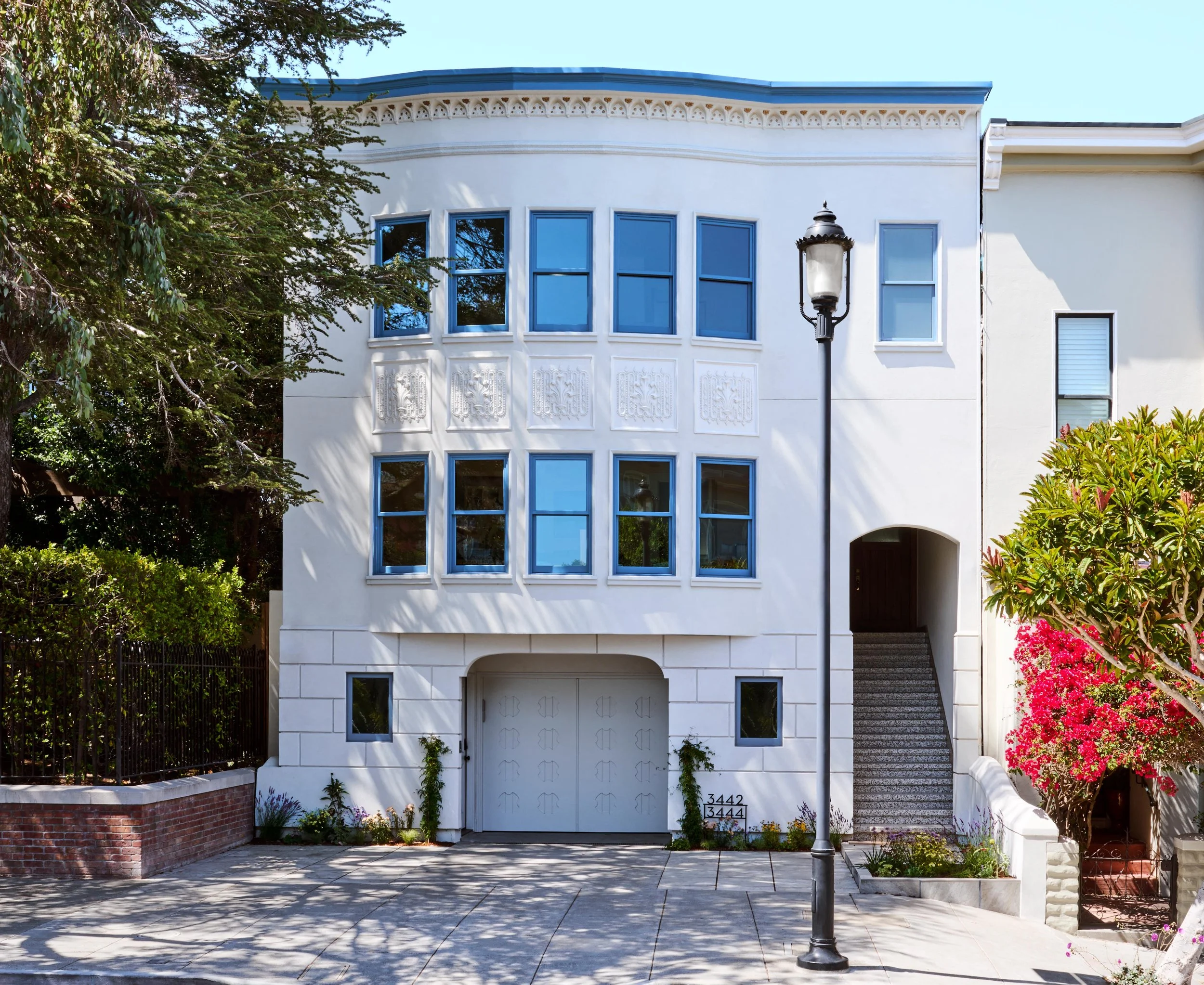 After slicing off the building’s back exterior wall to better showcase that breathtaking cityscape view and let in lots of fresh Northern California air, the interior design team set about building in meaningful moments throughout the home. Take, for example, the spectacular master suite complete with a lounging area set in a bay window overlooking a neighborhood view. You can feel the sun dappled on your shoulders as you read a book or work on your laptop. A chevron-shaped bookcase not only snatches the eye — it also serves as a sorting function — allowing the bibliophile homeowner to position his books in preferred monthly reading order.