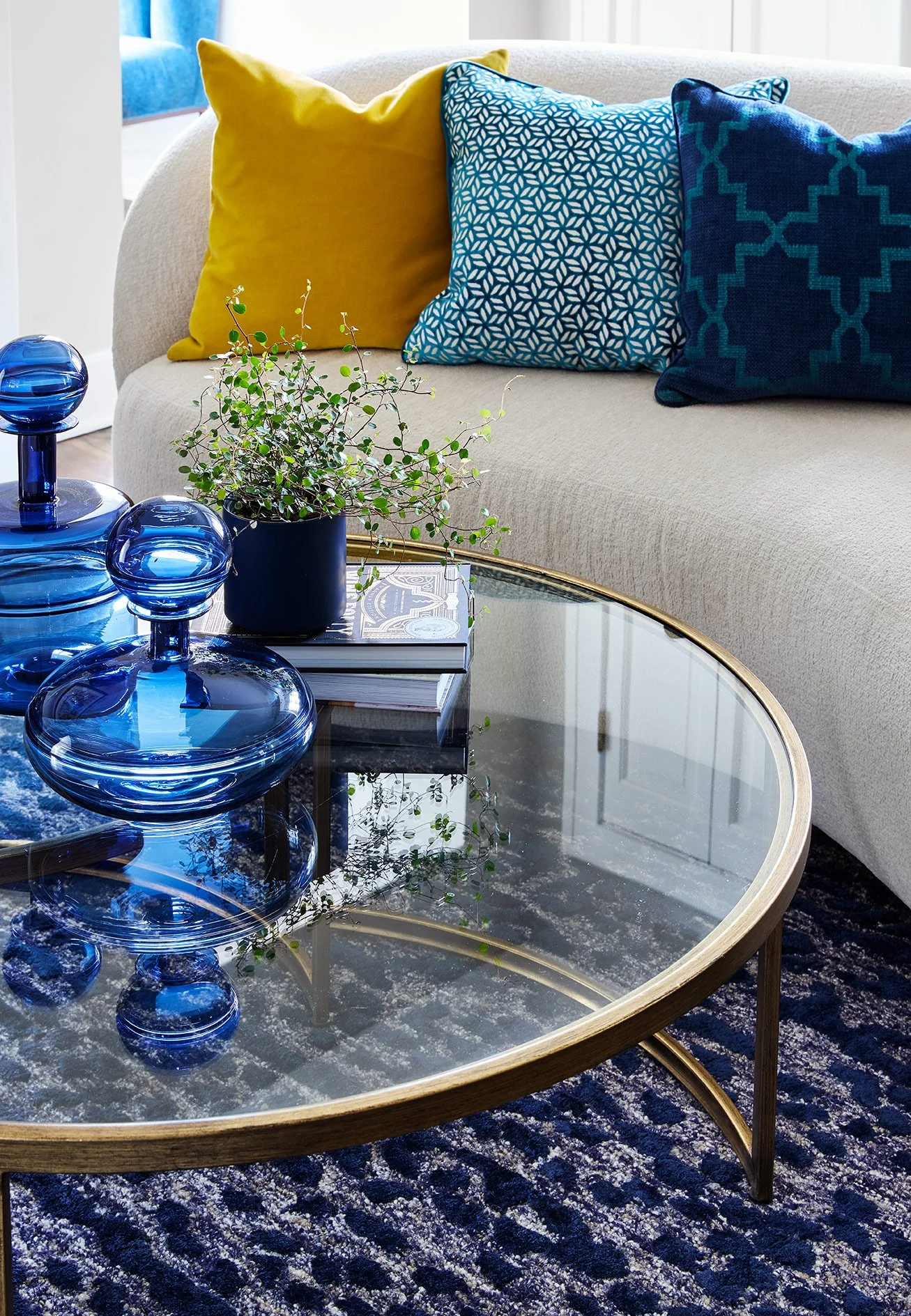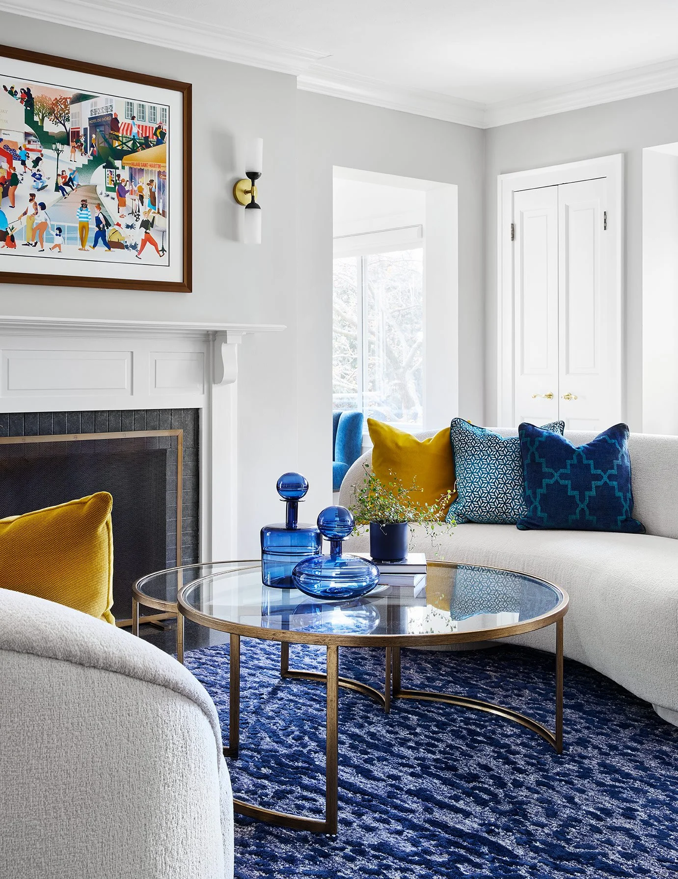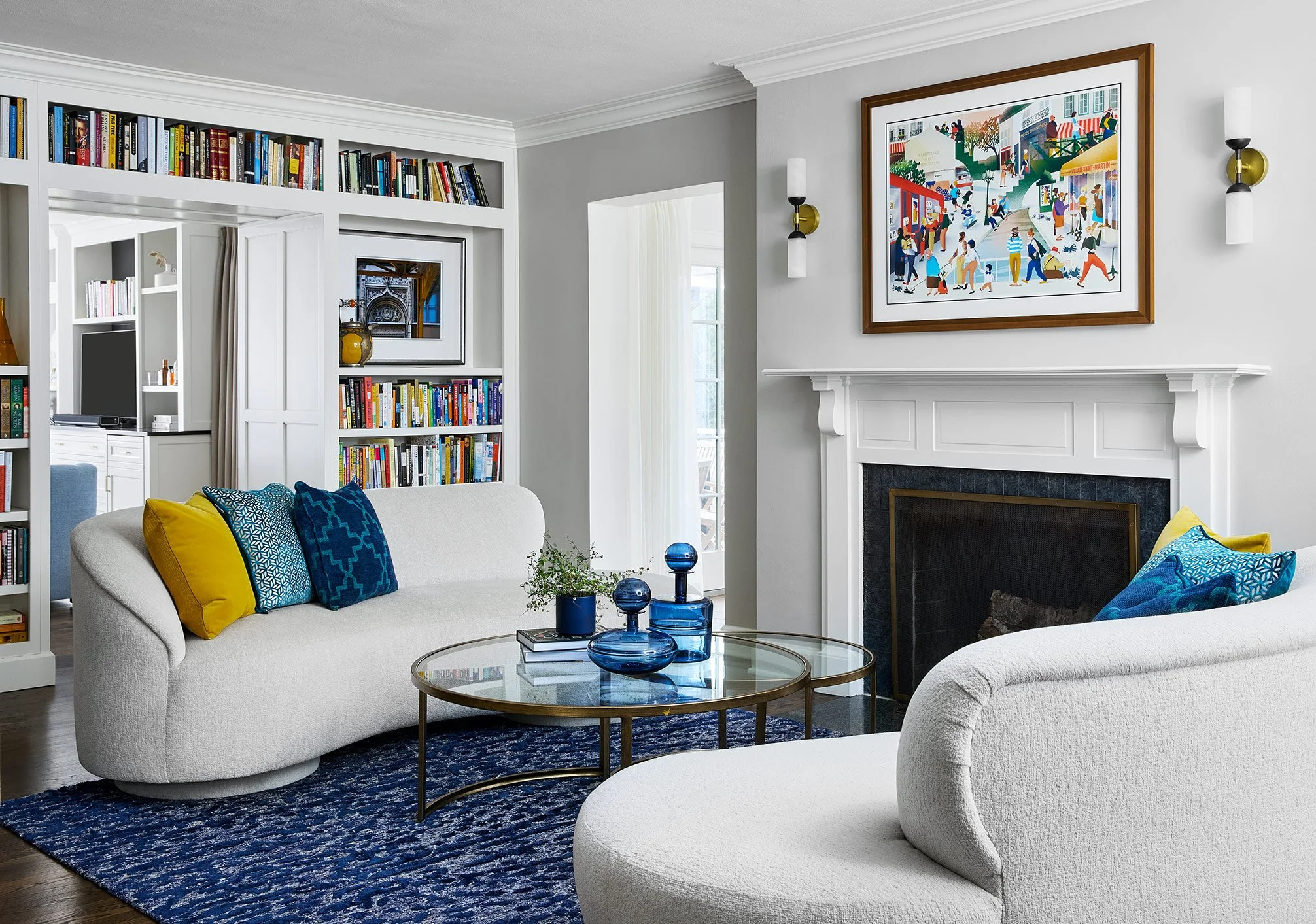 By finding the right pieces to take the living room from desolate furniture graveyard to cherished space for intimate moments, the client and her husband now enjoy quality time together on the curved and comfortable sofas in front of the reinvented fireplace.
