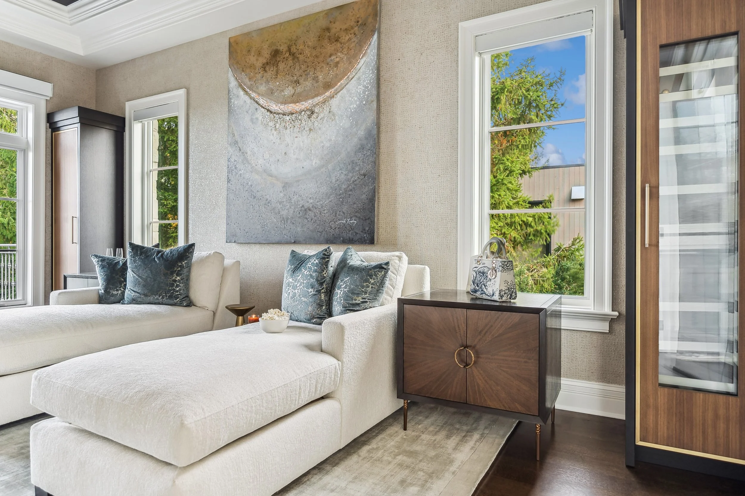 Step into the epitome of modern luxury with our latest interior design renovation. This exquisite home seamlessly blends contemporary sophistication with timeless charm. Illuminate your living space with an elegant cabinet adorned with an antique mirror, casting a warm glow that accentuates the curated decor.